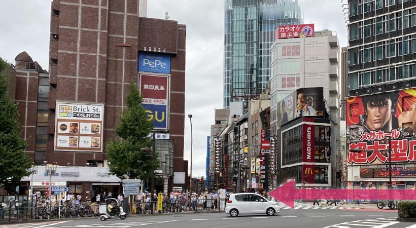 アイフルの看板のビルを通過して、新宿ガード下方向へ進んでください。